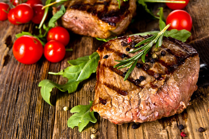 Roastbeef, Entrecôte, Steak, Rumsteak, Braten, Schmorbraten, Rouladen (gefüllt), Gulasch, Hackfleisch, Hamburger, frische Bratwurst, Mettwurst sowie Suppenfleisch und Knochen (Knochen kostenfrei)