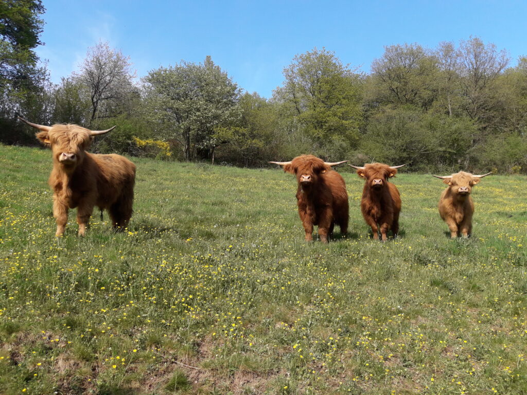 Unser Viehbestand stellt sich aus circa 90 Highland Cattle Tieren zusammen: Kühe, Rinder, Kälber. Auf dem Hof leben auch 3 Islandpferde, Katzen und 1 Schäferhund.