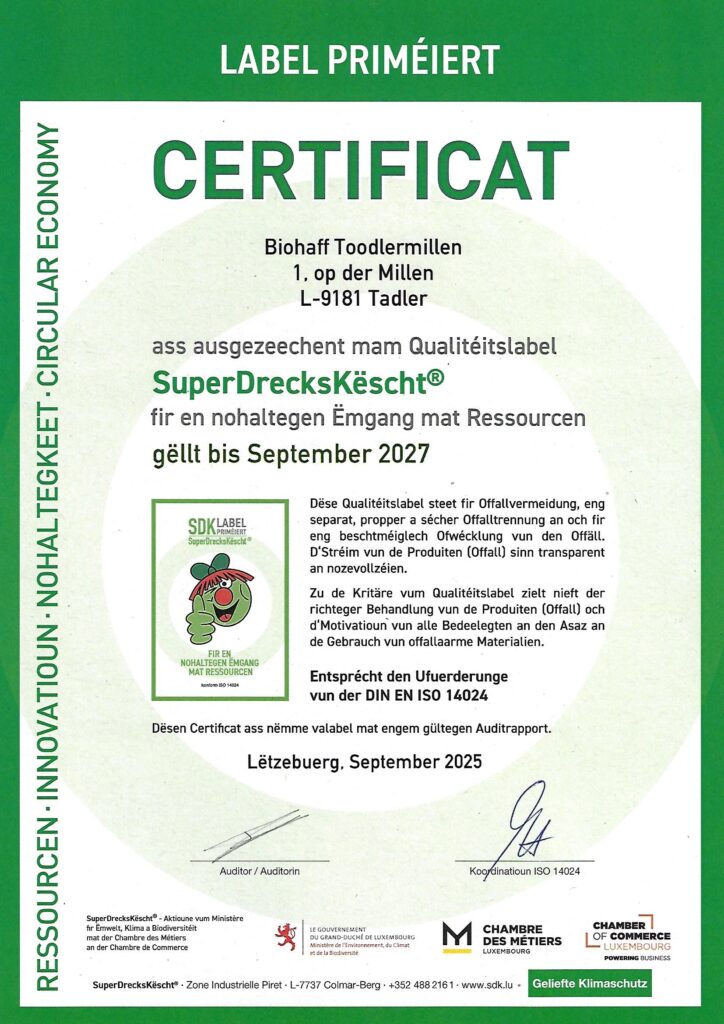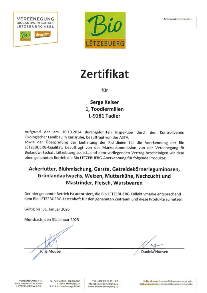 Unsere Schlachttermine sind planmäßig von Oktober bis März. Alle Schlachttiere werden von uns zum Schlachthof in Ettelbrück gebracht.